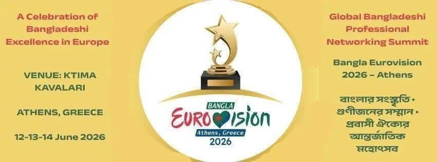 প্রবাসের মাটিতে বাংলাদেশের গৌরব ছড়িয়ে দিতে এবং গুণী প্রবাসী ও বাংলাদেশিদের স্বীকৃতি জানাতে গ্রীসের রাজধানী এথেন্সে অনুষ্ঠিত হতে যাচ্ছে বর্ণাঢ্য আন্তর্জাতিক আয়োজন ‘বাংলা ইউরোভিশন ২০২৬’।